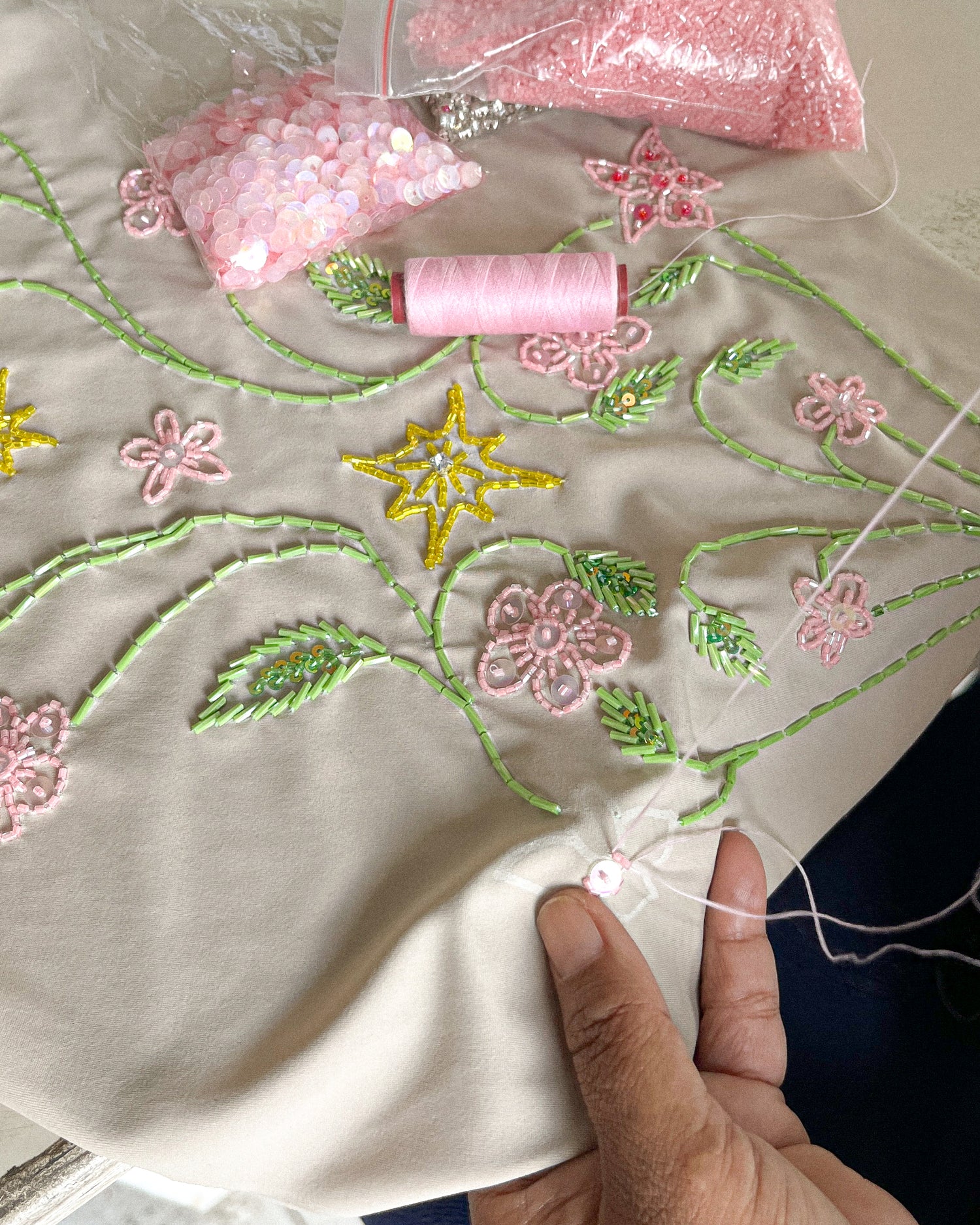 We prioritize the use of deadstock fabrics & beads to reduce waste in the production process. We also prioritize sustainable packaging and aim to reduce waste by using minimal packaging that still protects our products during shipping.