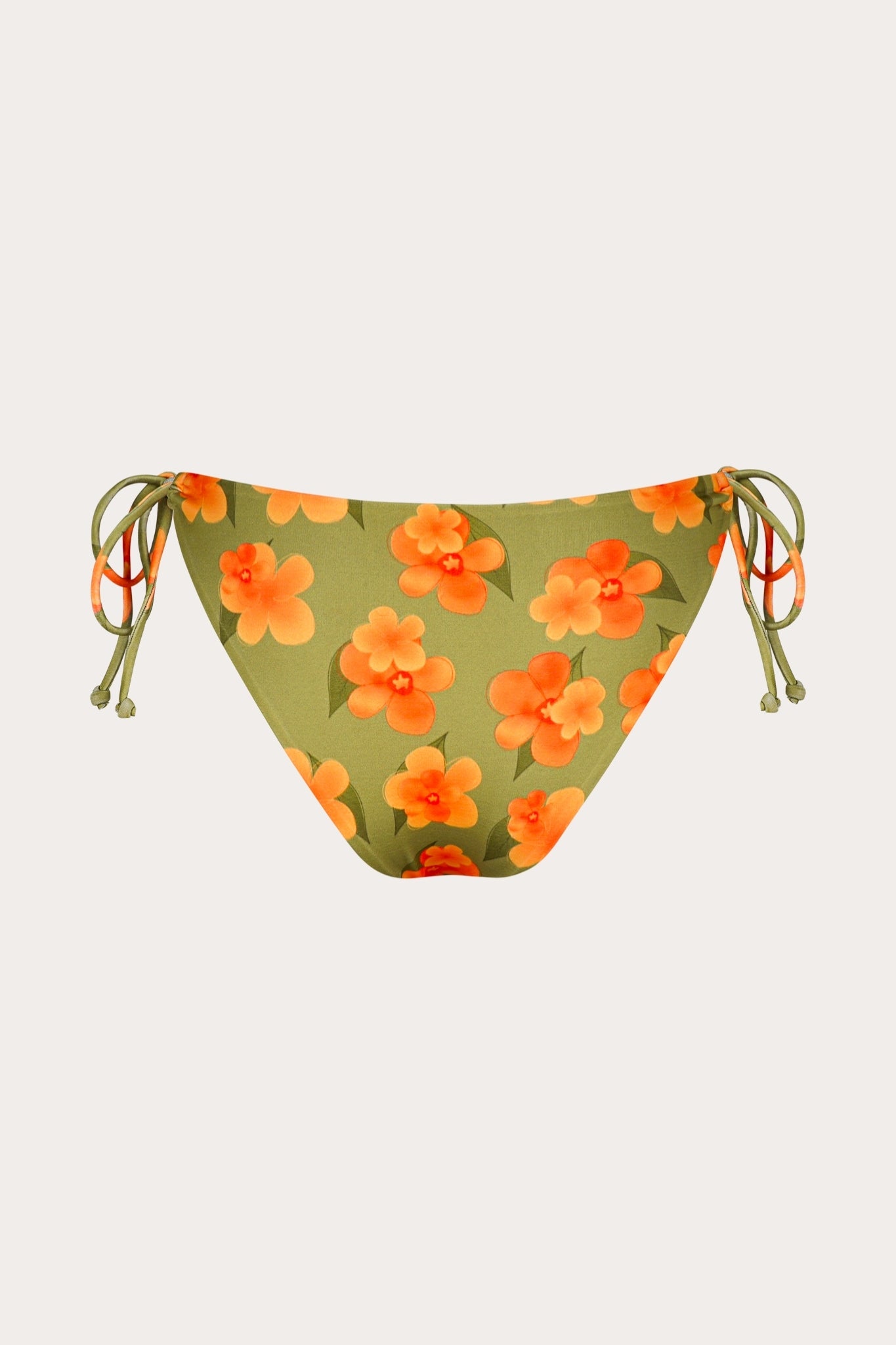 Designed in a soft green hue and orange floral print, with adjustable side ties for a customizable fit.