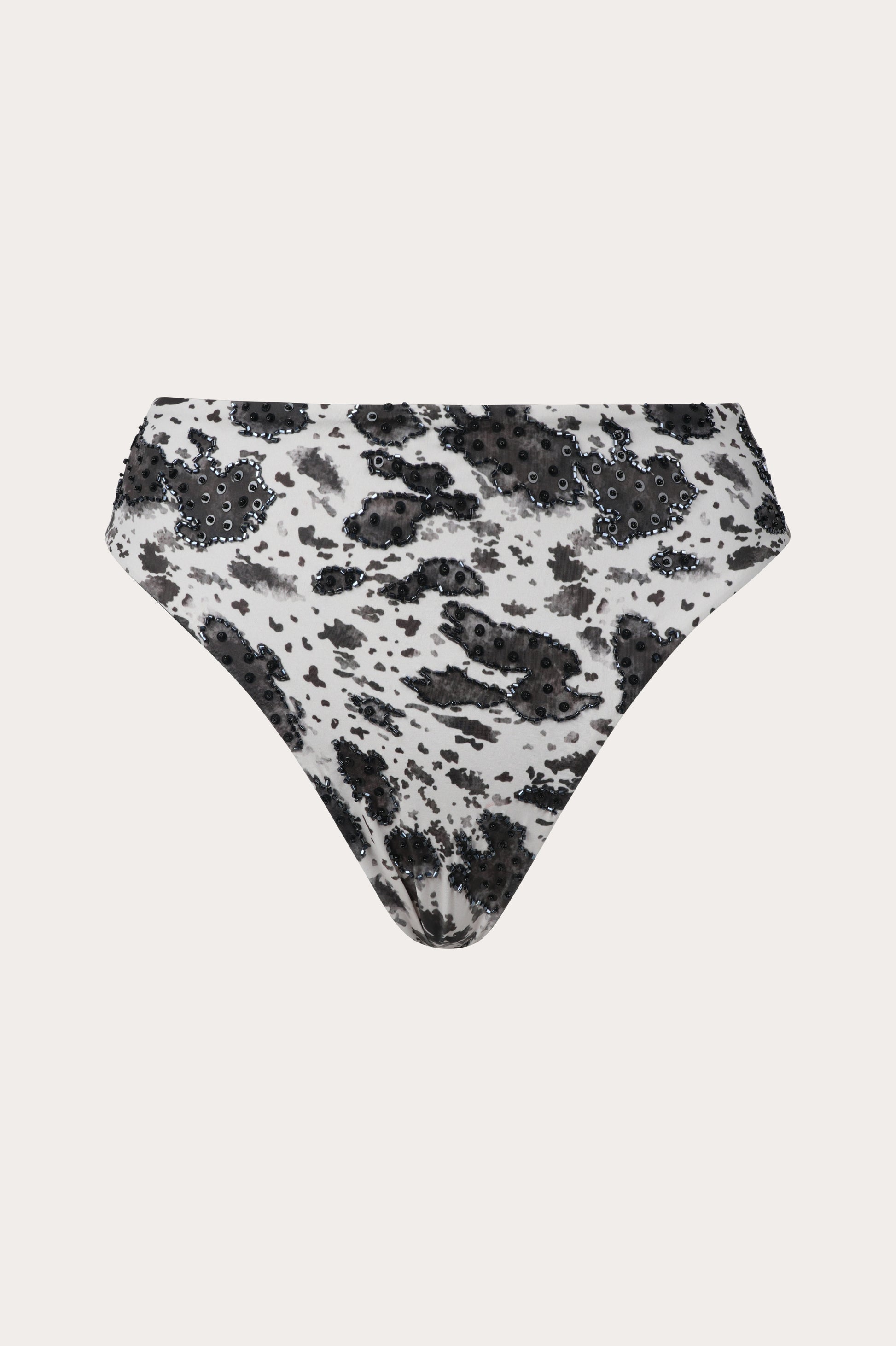 High-waisted bikini bottoms in our bold cow print, finished with subtle embroidered details that make every piece feel special. Designed for a flattering, full-coverage fit and made from soft, stretchy fabric that shapes beautifully while keeping you comfortable all day. Fully lined and easy to mix and match with your favorite Baby Blu tops, especially the Dakota Bralette Top for the full set.