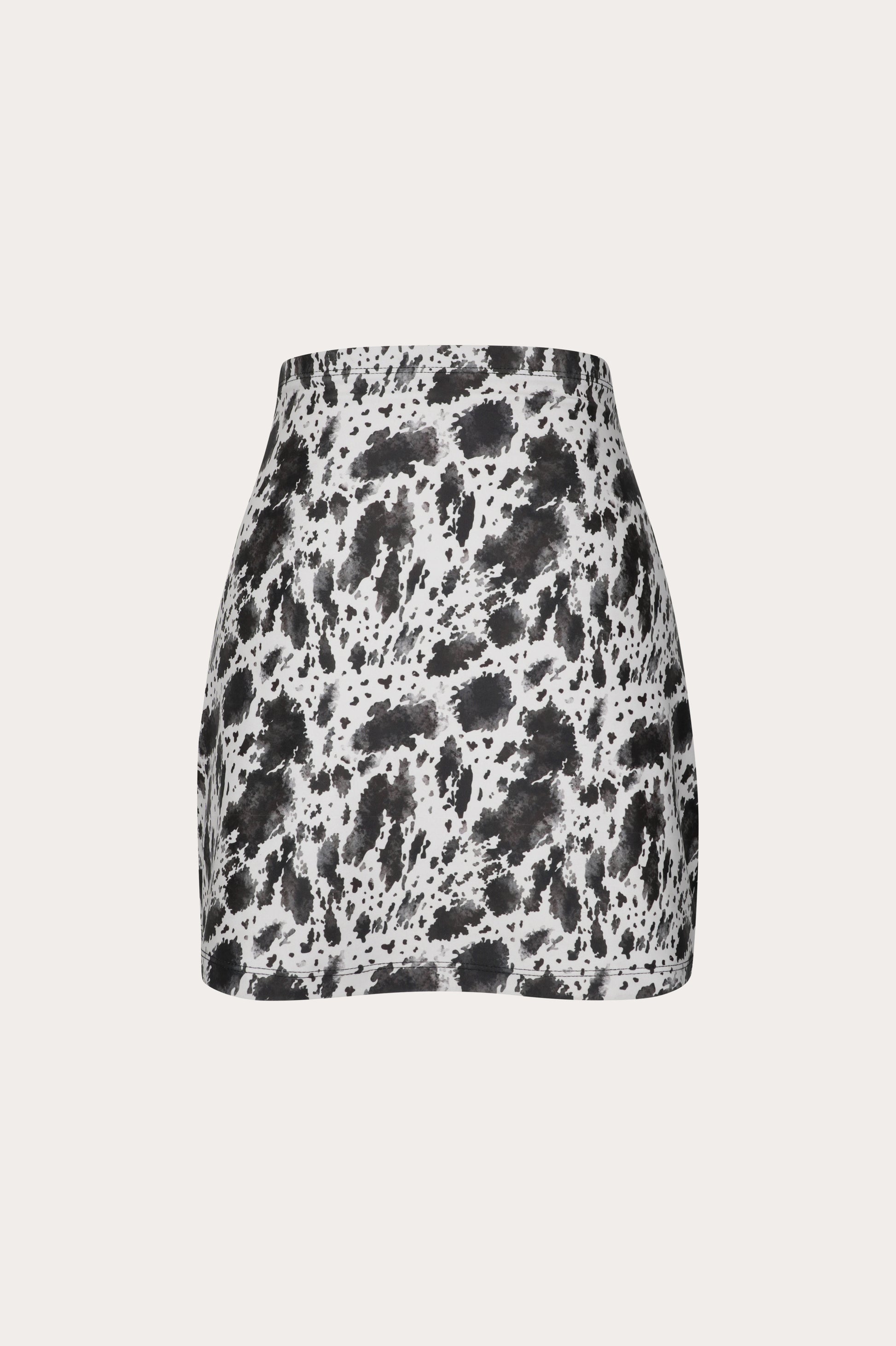 A semi-mini (on the longer end) skirt designed in our signature Dakota cow print. Made from soft lycra fabric that hugs comfortably while giving a smooth, flattering shape. It’s a little longer than your usual mini, offering an easy fit that’s made to move with you. Fully lined and finished with hand-embroidered details for that signature Baby Blu touch. Perfect to pair with any of your Dakota swim pieces.